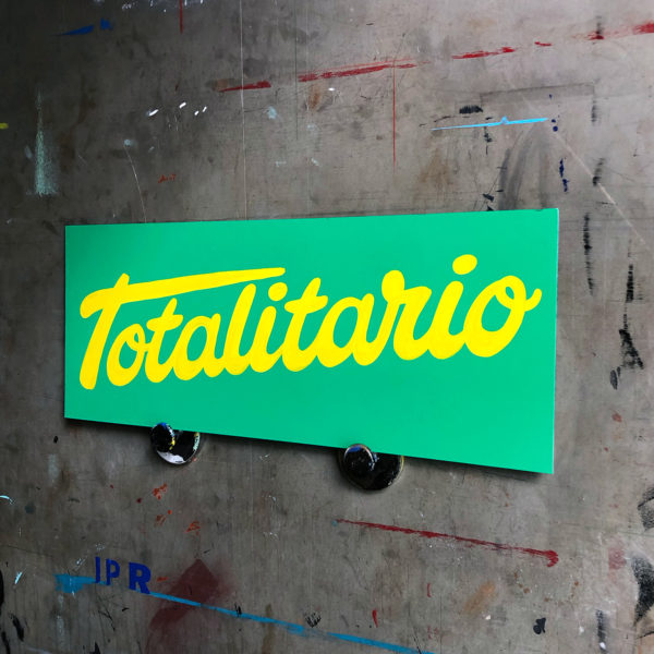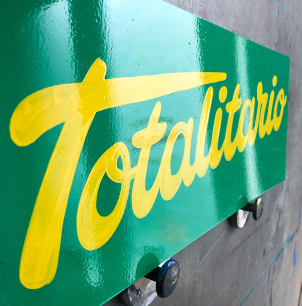 Original sign, hand painted with enamels on aluminium paneland (‘No-Logo’ series), “Totalitario” in the style of ‘Totocalcio’ lettering